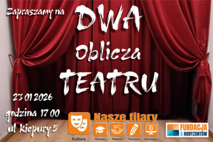 Młodzieńcza odwaga i dojrzały dystans – jeden wieczór, wiele emocji 23 stycznia 2026 roku o godz. 17:00 zapraszamy na wyjątkowe wydarzenie teatralne „Dwa Oblicza Teatru”, które odbędzie się w przestrz...